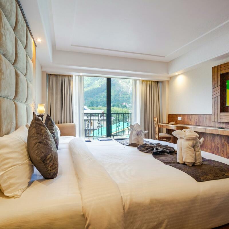 Relax in our beautifully designed rooms equipped with modern amenities to ensure your utmost comfort.